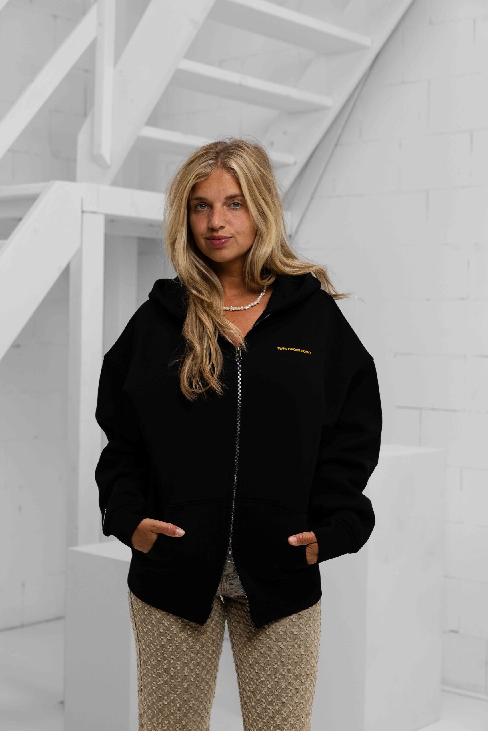 De ’24 Uomo Initial Zip Hoodie dames Black’ is een must-have item voor het komende herfst/winterseizoen. Dit zwarte vest voor dames heeft een capuchon en lange mouwen, perfect voor extra warmte en comfort. het vest heeft een losvallende pasvorm en is gemaakt van 70% katoen en 30% polyester, waardoor hij zacht en duurzaam is. Het vest is voorzien van een opvallende print en twee handige zakken aan de voorkant. Stijlvol en praktisch, dit vest van het merk 24 Uomo is een essentieel item voor je kledingkast.