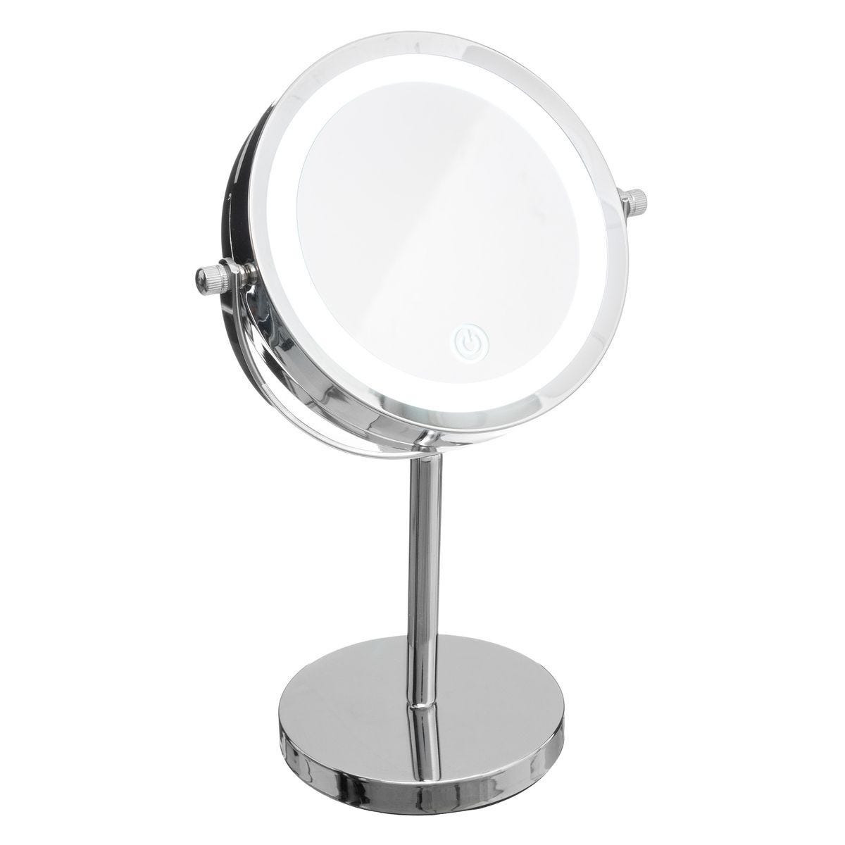 Make-up spiegel/scheerspiegel – met LED verlichting – op voet – D18 x H30 cm – Badkamer — 5five