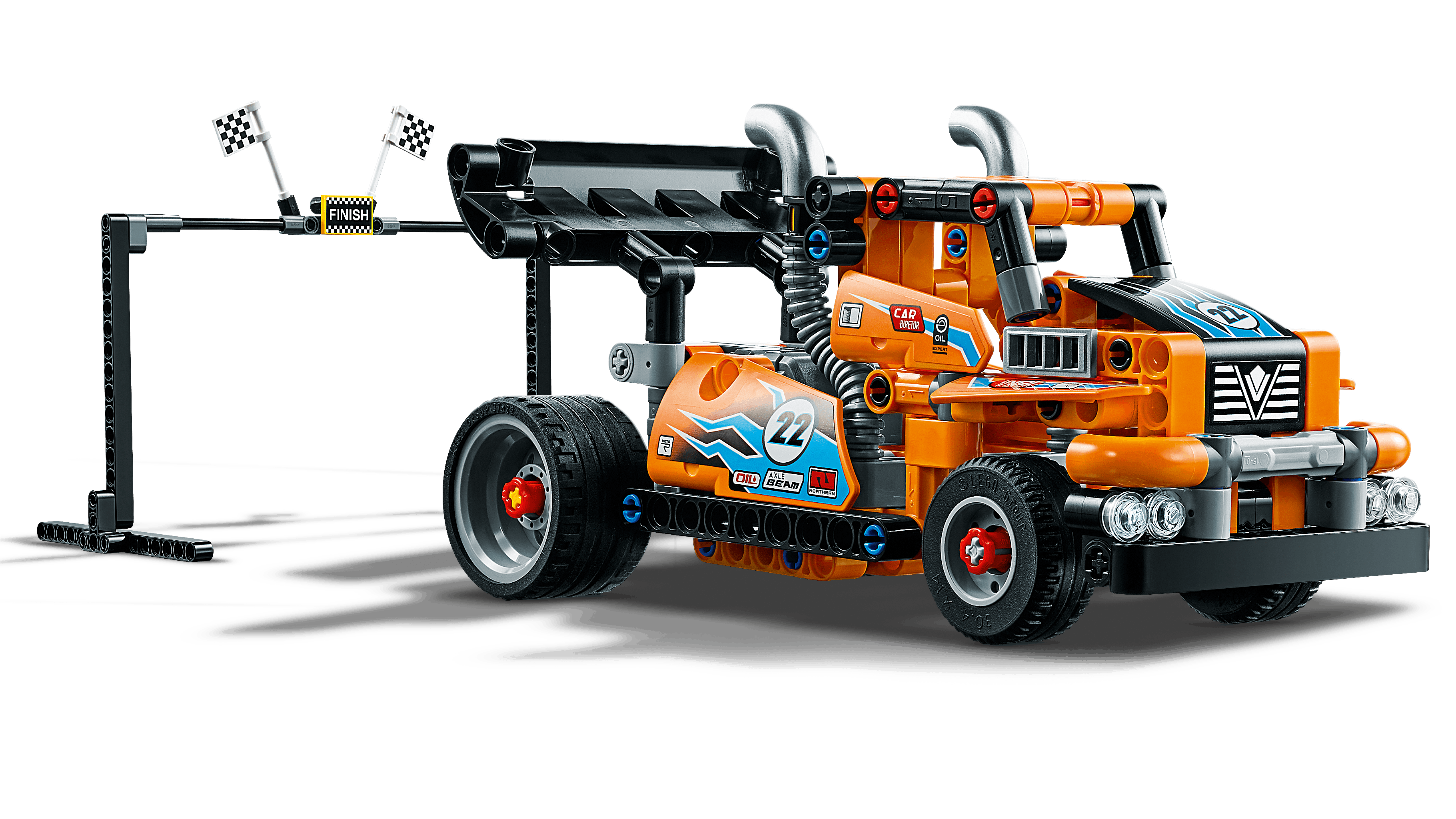 LEGO Technic 42104 Racetruck Een fantastische truck voor kinderen die dol zijn op actiespeelgoed. Je kleine coureur zal het geweldig vinden om deze LEGO Technic (42104) Racetruck te bouwen. En dat is nog maar het begin! Zodra het model is gebouwd, hoef je het alleen maar naar achteren te trekken en los te laten om de truck naar de finish te zien scheuren, voor net zo veel spanning en sensatie als bij een echte race. Geweldige truckset voor raceavonturen Deze truck stimuleert de fantasie van jonge autoliefhebbers. De enorme uitlaat, de gigantische spoiler en de deuren en motorkap die open kunnen bieden kinderen talloze rollenspelmogelijkheden. En dat is nog niet alles! Kinderen kunnen deze 2-in-1 set ombouwen tot een coole racer, waardoor ze hun bouwvaardigheden verder kunnen ontwikkelen. Technisch speelgoed dat de fantasie stimuleert LEGO Technic is ideaal voor bouwliefhebbers die graag uitdagende modellen boordevol realistische kenmerken bouwen. Bij elke set horen gedrukte instructies en bovendien heeftdeze set ook Instructions PLUS. Deze digitale bouwinstructies zijn beschikbaar in de gratis LEGO Life app en bevatten zoom- en draaifuncties waardoor bouwers zelf een gevoel van voldoening kunnen ervaren.