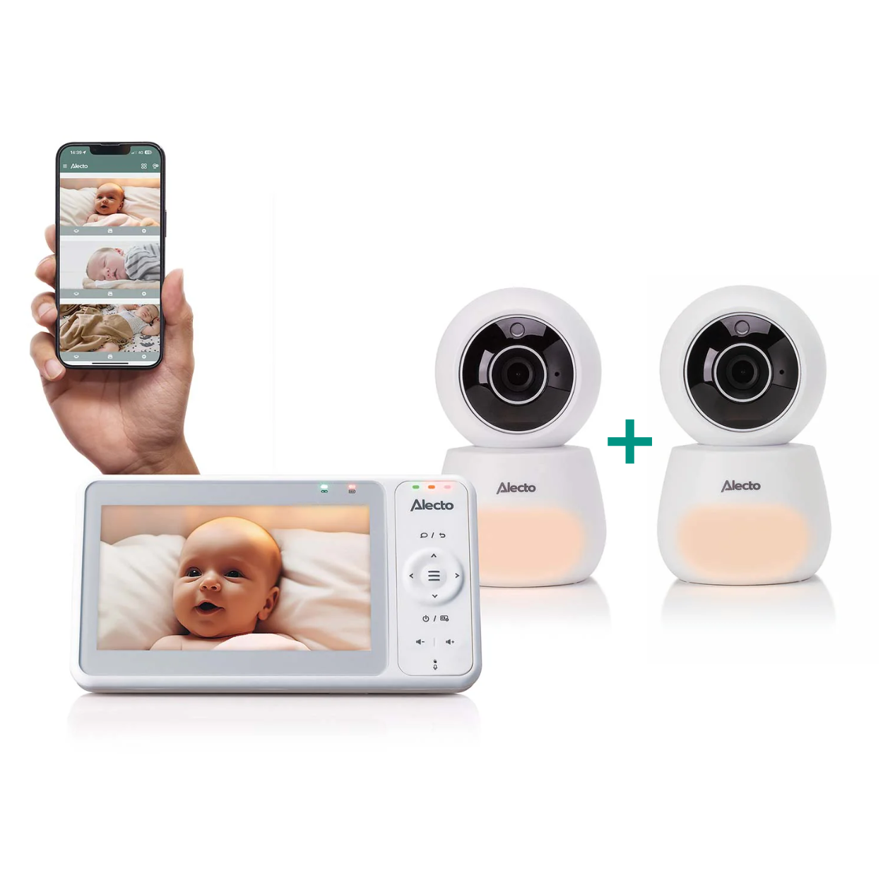 Of je nu twee kindjes hebt of simpelweg verschillende kamers wilt monitoren: met de extra camera houd je moeiteloos alles in de gaten. Je schakelt eenvoudig tussen de camera’s of bekijkt meerdere beelden tegelijk, zodat je altijd overzicht houdt.