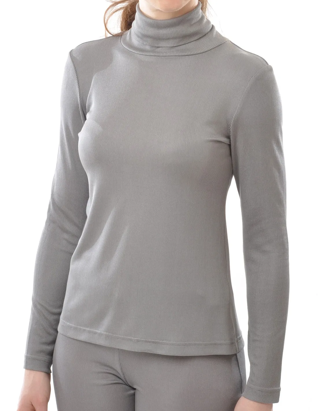 Zijden Dames Rib Colshirt Lange Mouw Alkena Kleur Antraciet Maat Extra Large — Alkena