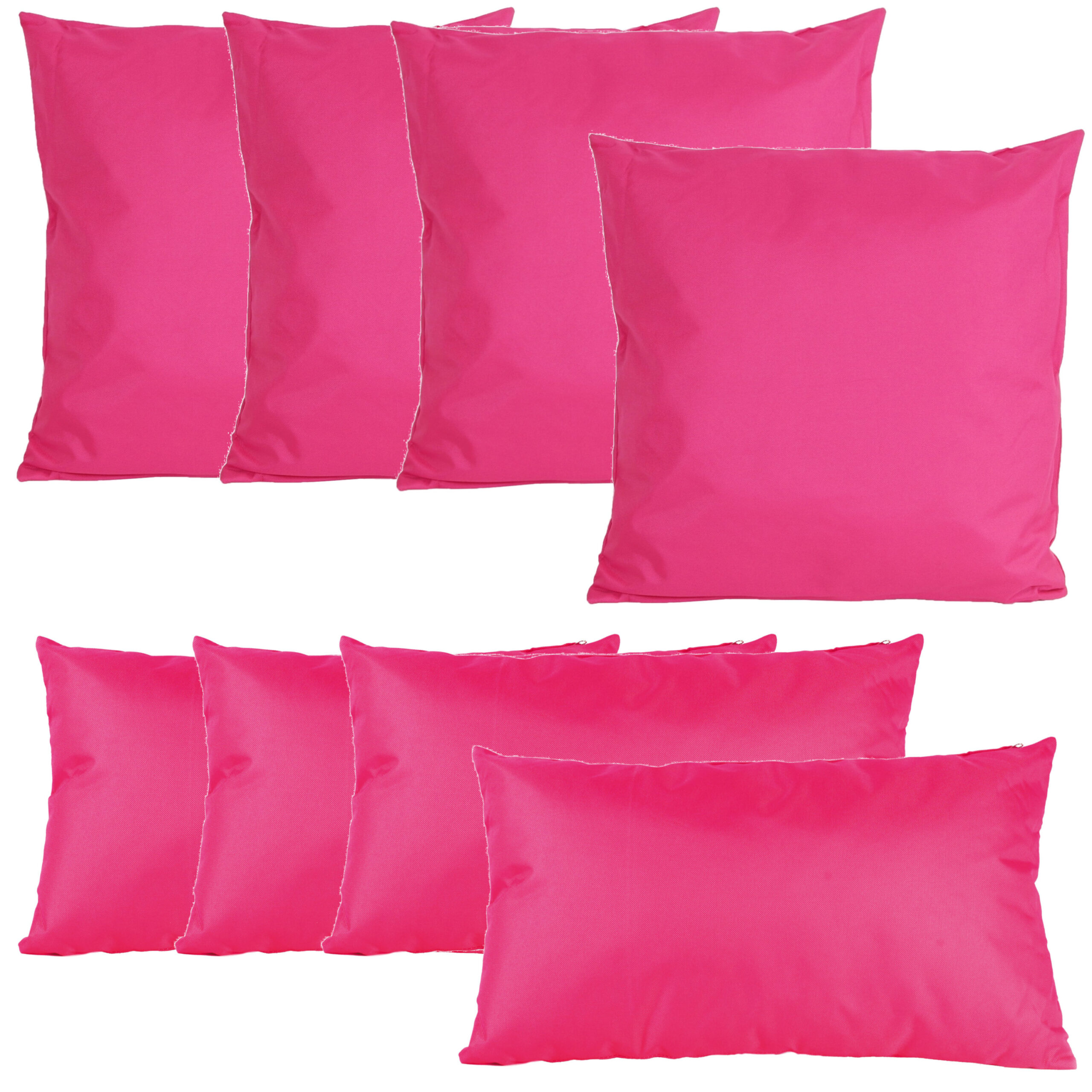 Bekijk product bij Bellatio.nl — bestel vandaag nog en ontvang de Bank/tuin kussens set – binnen/buiten – 8x stuks – fuchsia roze – In 2 formaten laag/hoog snel thuis.