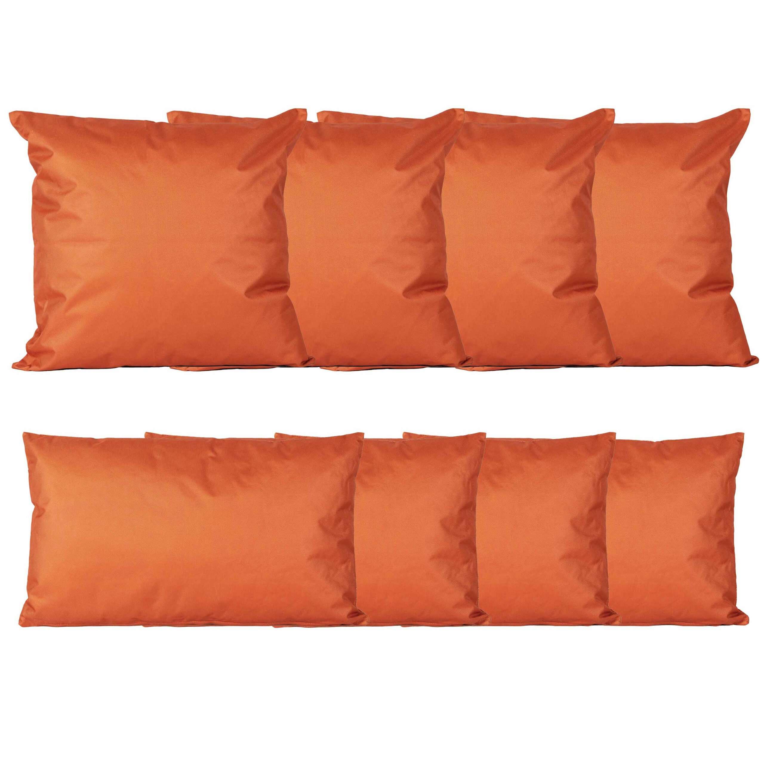 Bekijk product bij Bellatio.nl — bestel vandaag nog en ontvang de Bank/tuin kussens set – binnen/buiten – 8x stuks -oranje – In 2 formaten laag/hoog snel thuis.