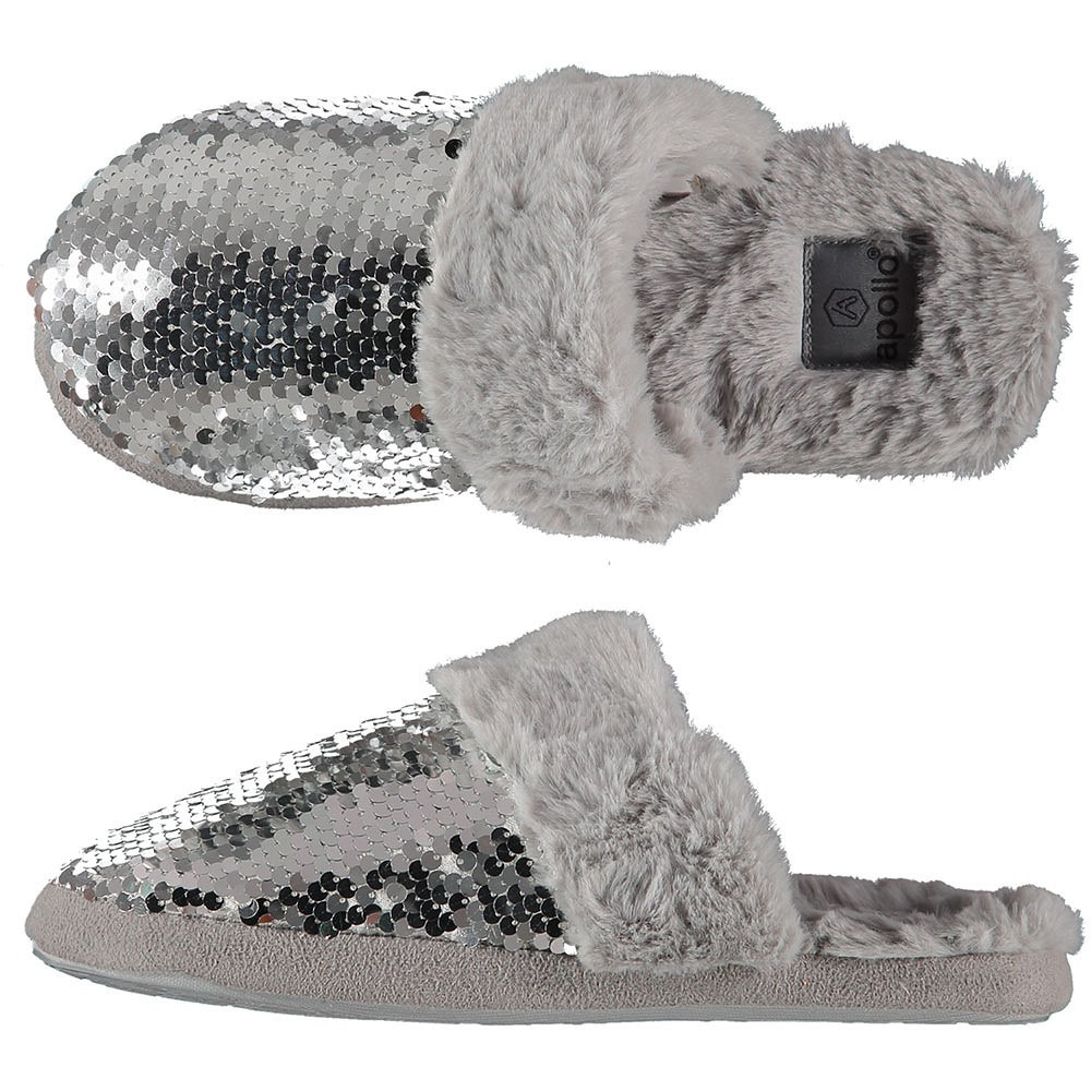 Dames instap slippers/pantoffels met pailletten grijs maat 37-38 — Apollo