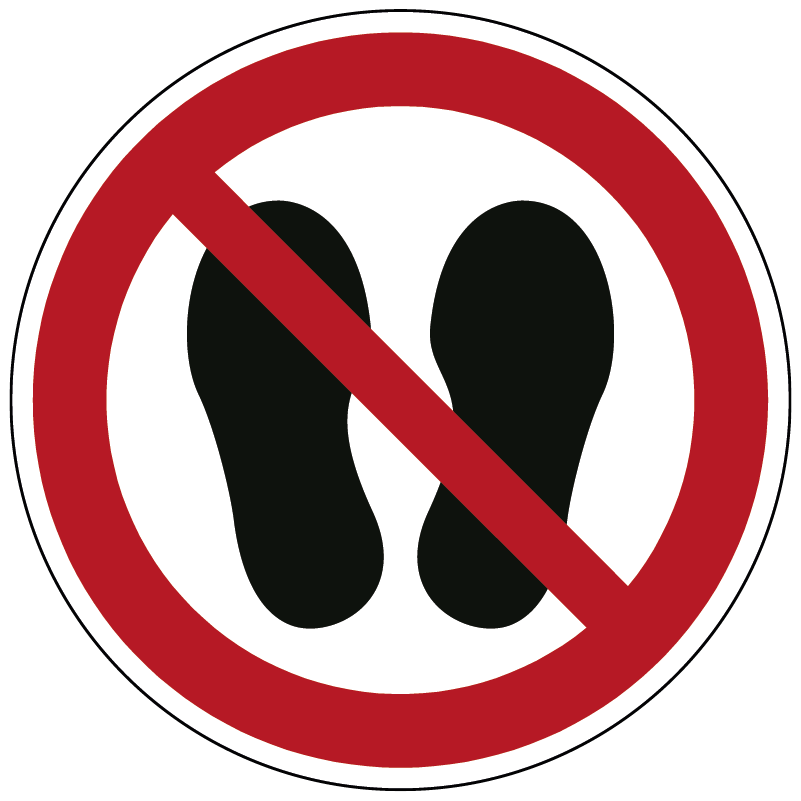 Het pictogram toont een ronde witte achtergrond met rode rand en schuine rode streep over een zwart persoon-symbool, wat een universeel verbod op betreden aanduidt. Dankzij de gestandaardiseerde vormgeving is de boodschap duidelijk voor iedereen – ongeacht taal.