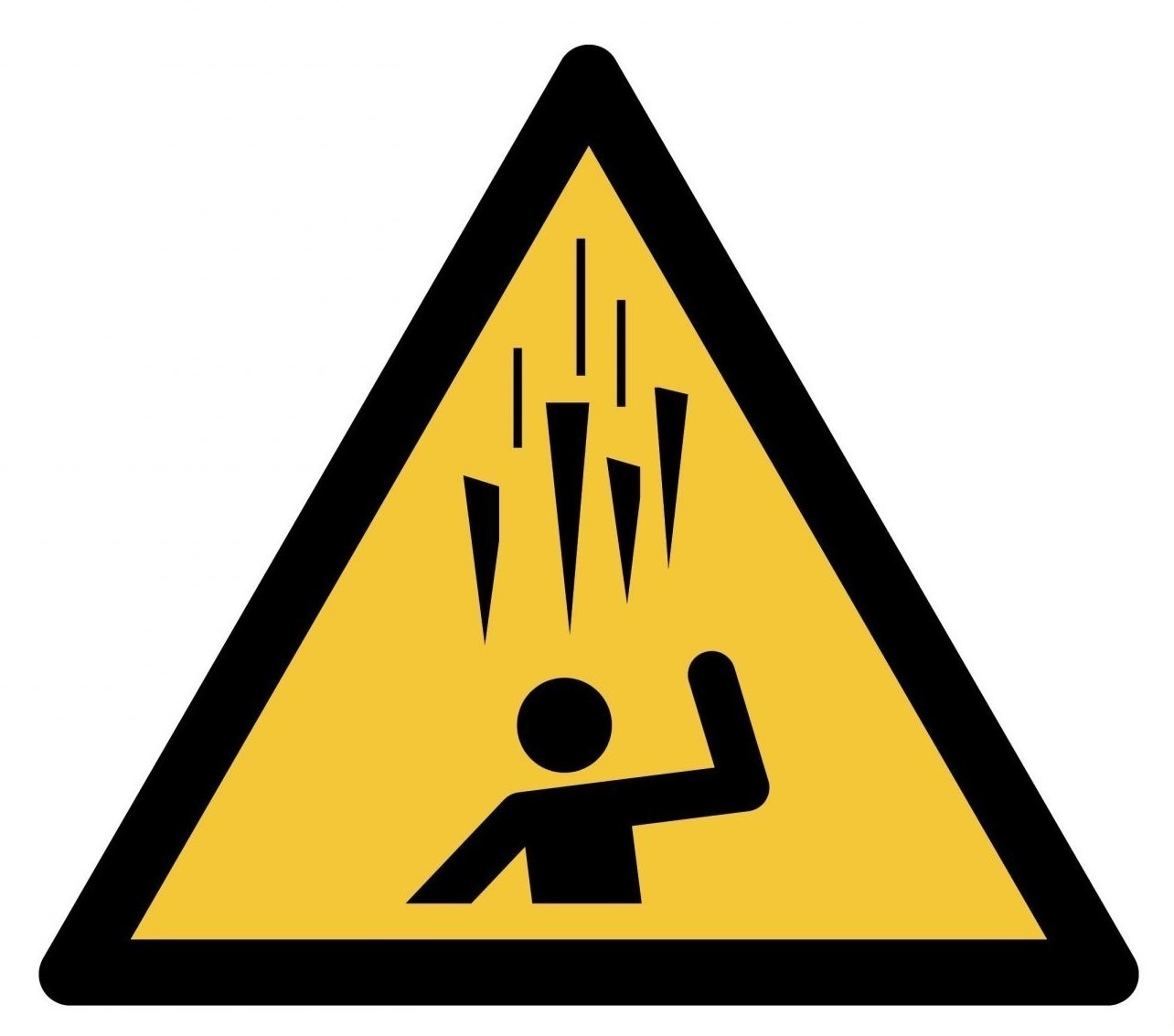 Met een gele driehoek, zwarte rand en zwart pictogram van vallend ijs, is het gevaar snel en duidelijk zichtbaar. Door het gestandaardiseerde ISO 7010-ontwerp is het risico duidelijk herkenbaar voor iedereen – ongeacht taal of achtergrond.