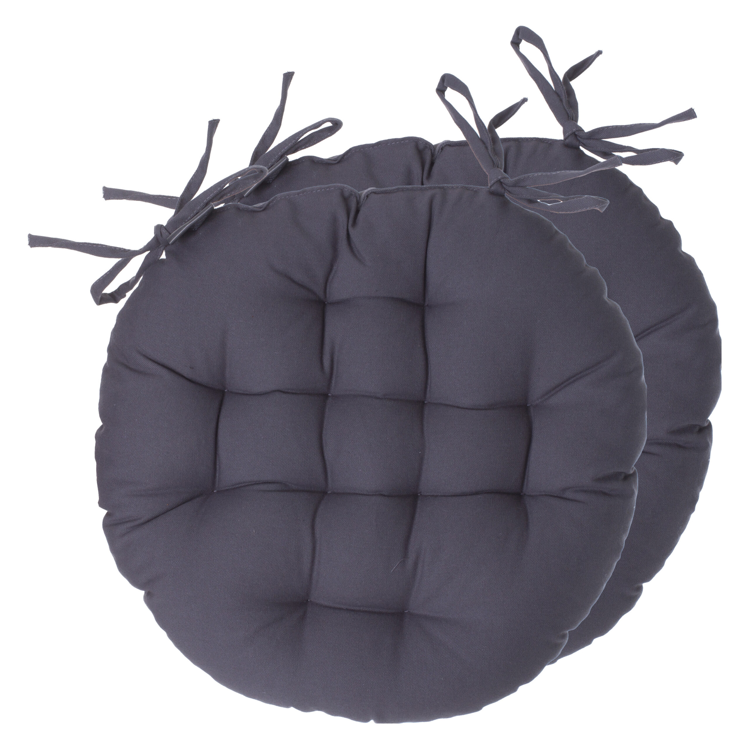 2x stuks Atmosphera wicker tuinstoelkussens rond geschikt voor binnen en buiten gebruik. Kleur: donkergrijs. Afmeting: 38 x 6.5 cm Materiaal: 100% katoen. Niet wasbaar, afnemen met vochtige doek. Gewicht: 590 gram. Buiten/binnen kussens voor de stoelen van uw tuinstel of keukentafel. Diverse mooie luxe kleuren voor een topprijs. Met twee vastzet koordjes.