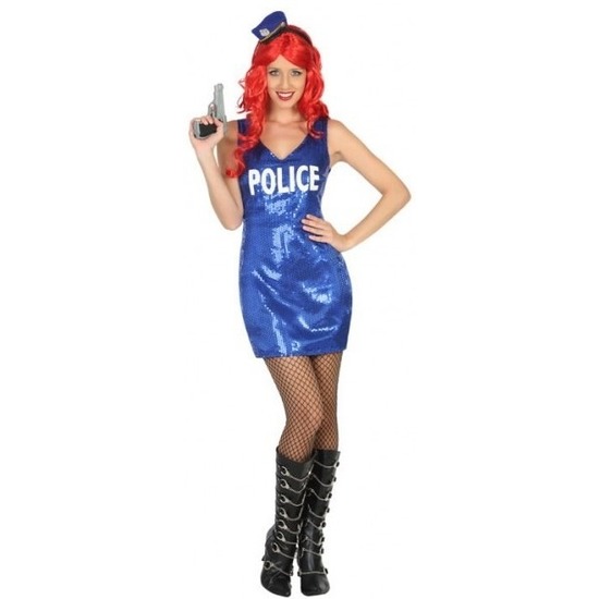 Bekijk product bij Bellatio.nl — bestel vandaag nog en ontvang de Politie glitter verkleed jurkje voor dames snel thuis.