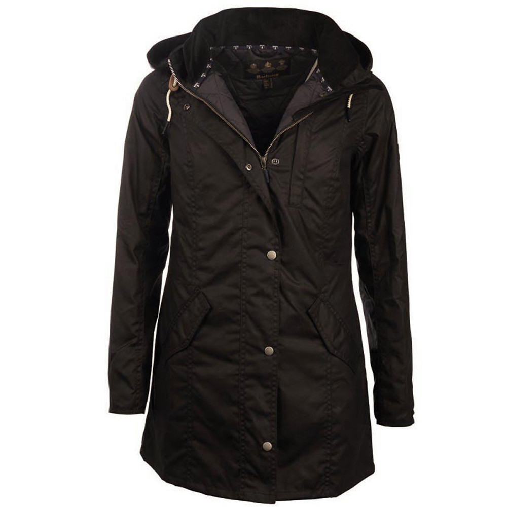 Een mooie dames jas van Barbour. De jas heeft een capuchon en is voorzien van een ritssluiting met drukknopen. Ook heeft de jas een paspelzak en twee klepzakken.