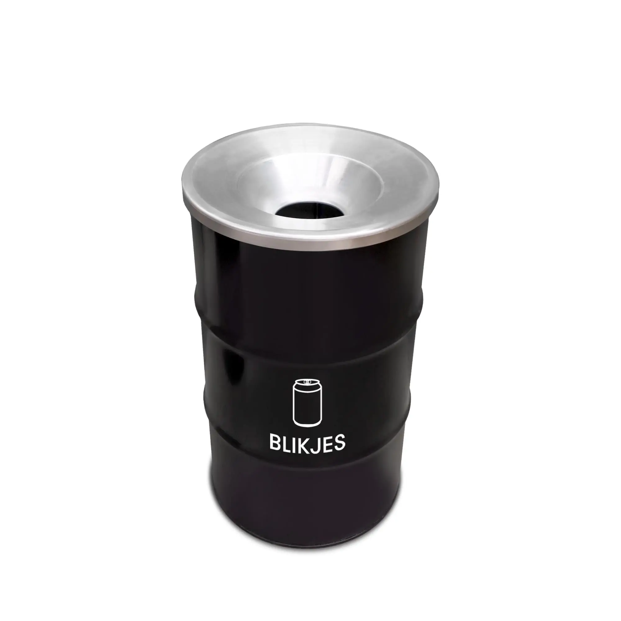 BinBin Blikjes zwart 120 Liter olievat afvalscheiding prullenbak| grote afvalbak | inzamelbak blikjes | statiegeld blikken | Horeca afvalbak. Met vlamwerenddeksel. 48x82CM