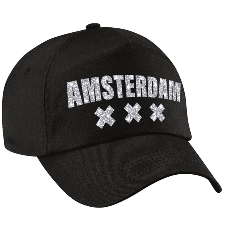 Amsterdam pet / cap zwart met zilveren letters voor dames en heren — Bellatio Decorations