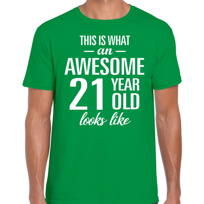 Bekijk product bij Kado-versturen.nl — bestel vandaag nog en ontvang de Awesome 21 year / 21 jaar cadeau t-shirt groen heren snel thuis.