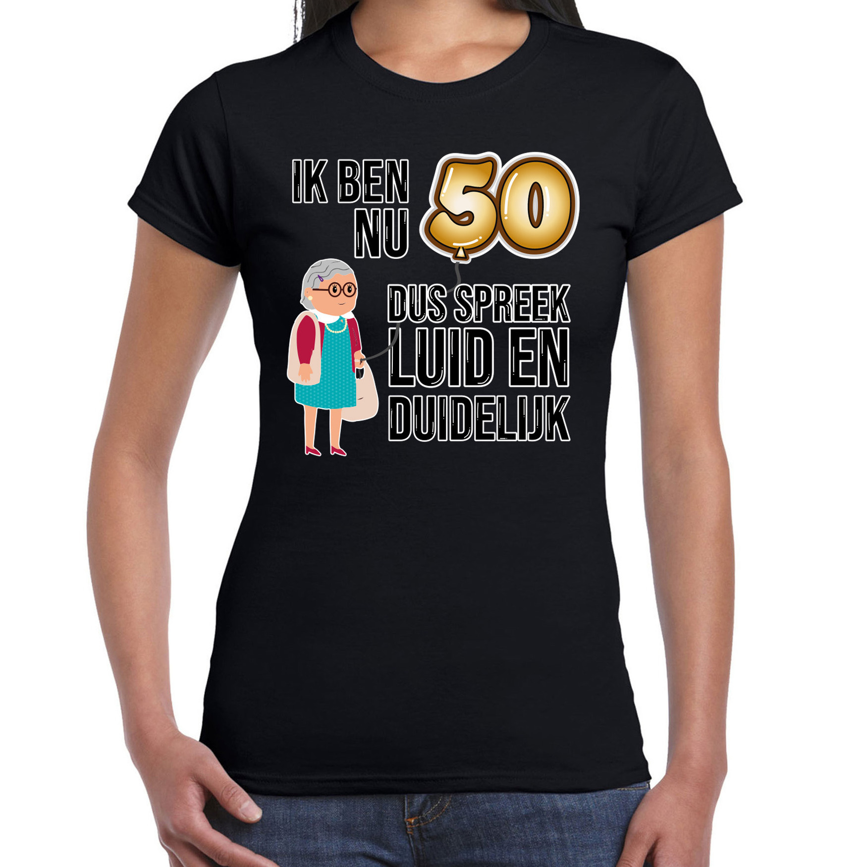 BD Cadeau T-shirt dames – leeftijd 50 jaar – zwart – luid en duidelijk — Bellatio Decorations