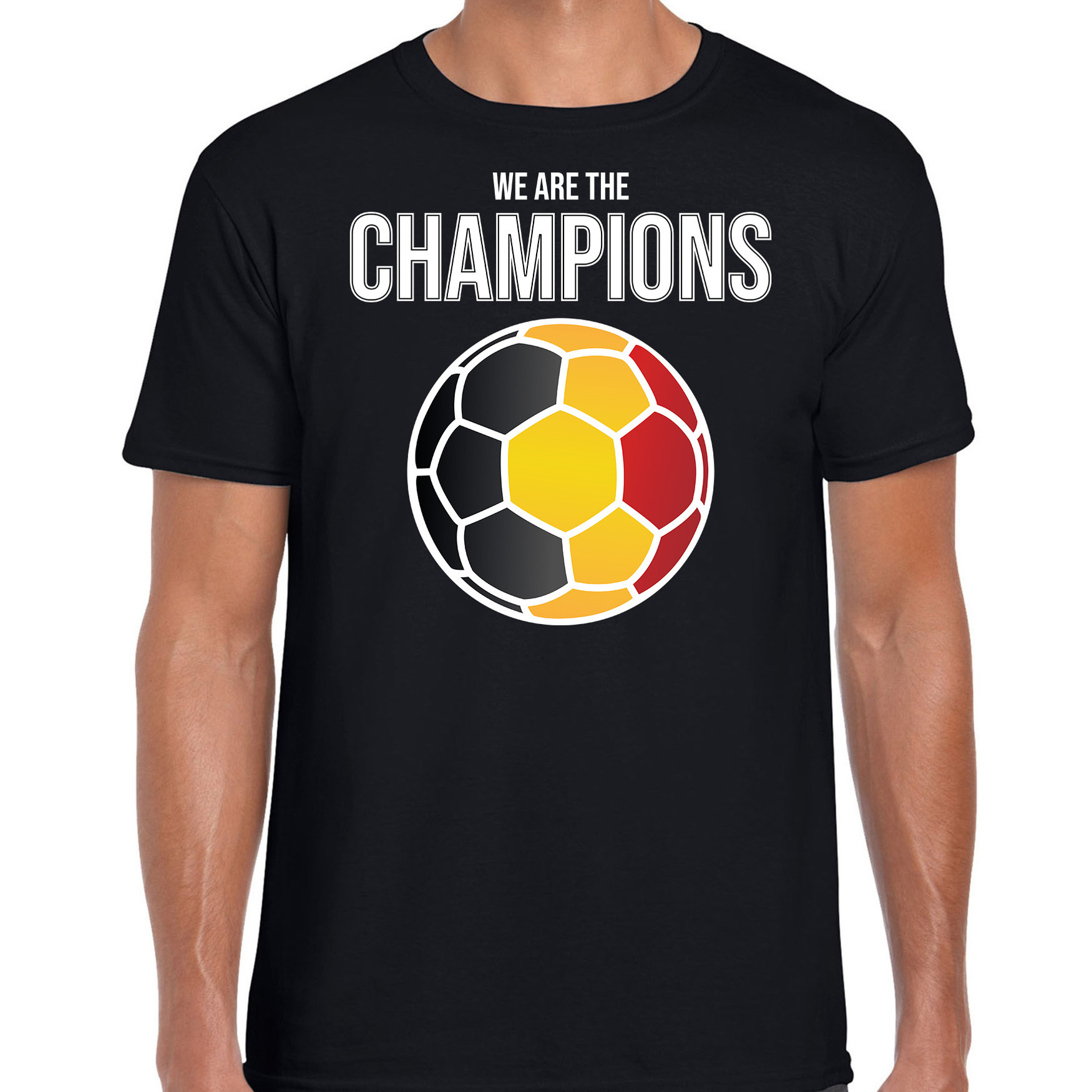Belgie EK/ WK supporter t-shirt we are the champions met Belgische voetbal zwart heren — Bellatio Decorations