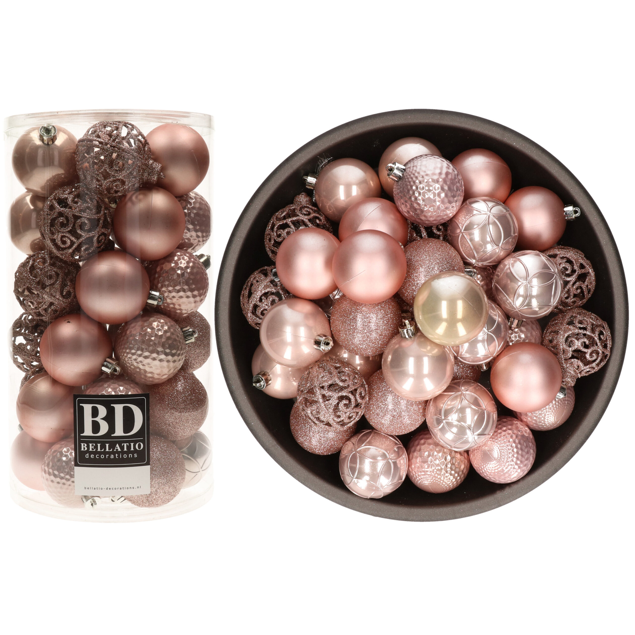 Bekijk product bij Bellatio-kerstversiering.nl — bestel vandaag nog en ontvang de Bellatio Decorations Kerstballen – 74x st – oudroze – D6 cm snel thuis.