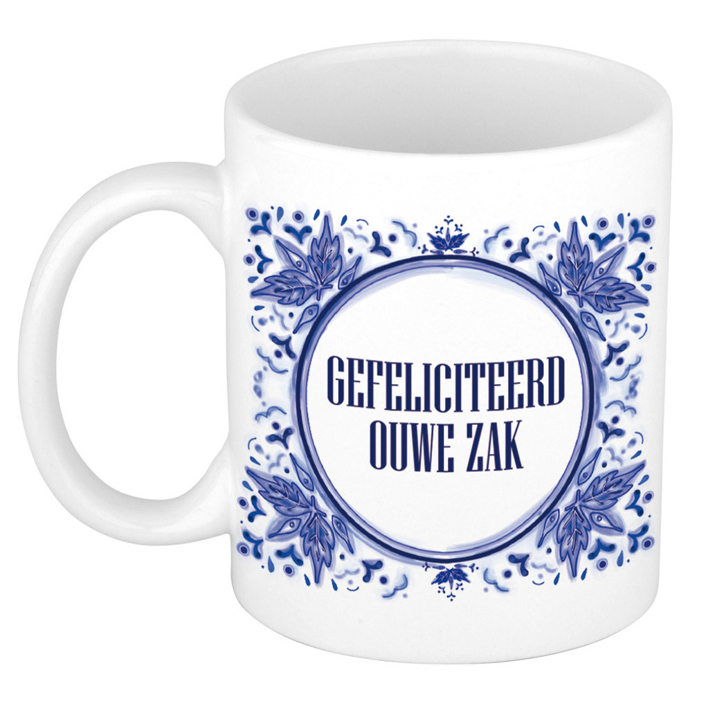 Bellatio Decorations Verjaardag cadeau mok – Delfts Blauw – gefeliciteerd – 300 ml – keramiek — Bellatio Decorations