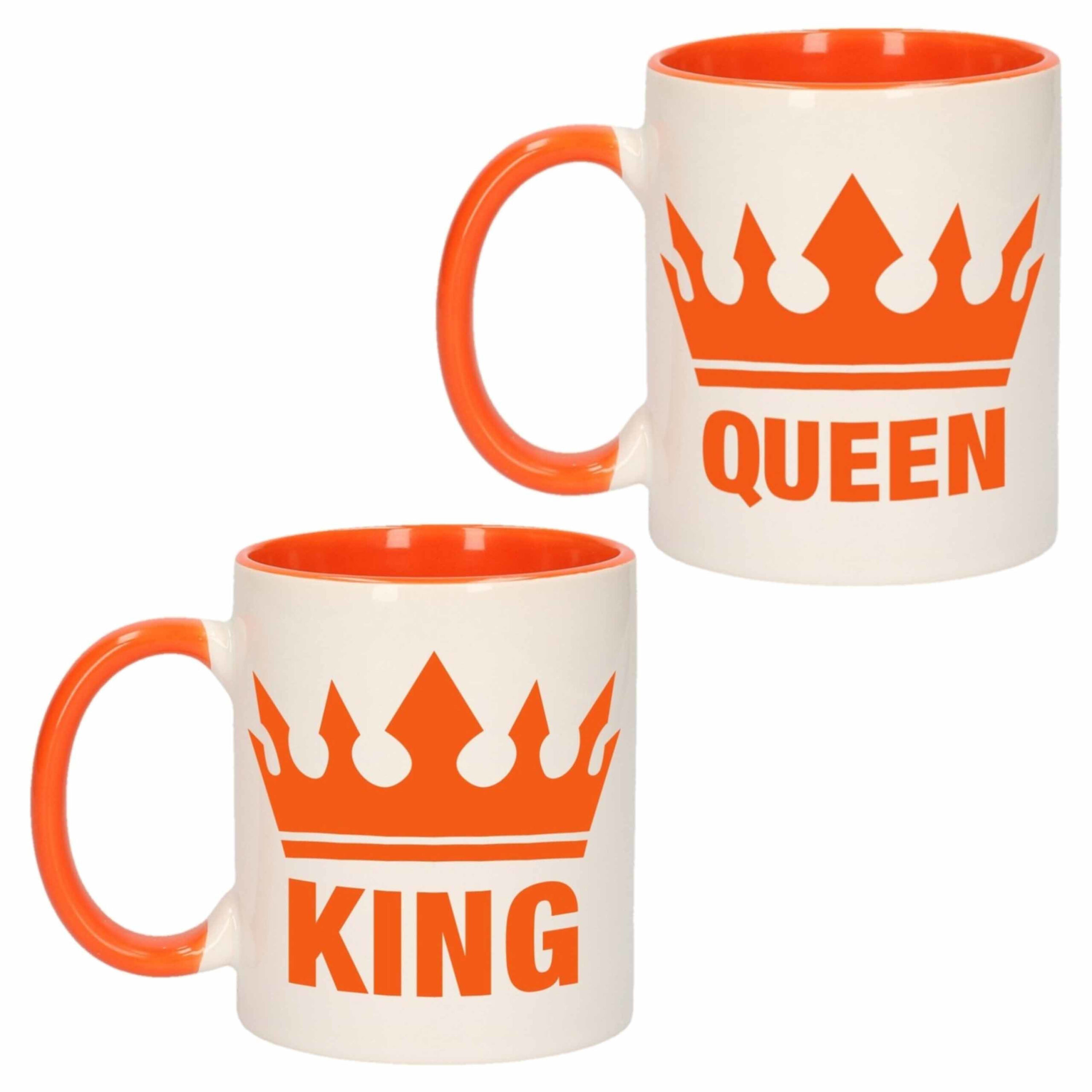 Cadeauset van oranje King en Queen mokken/bekers 300 ML — Bellatio Decorations