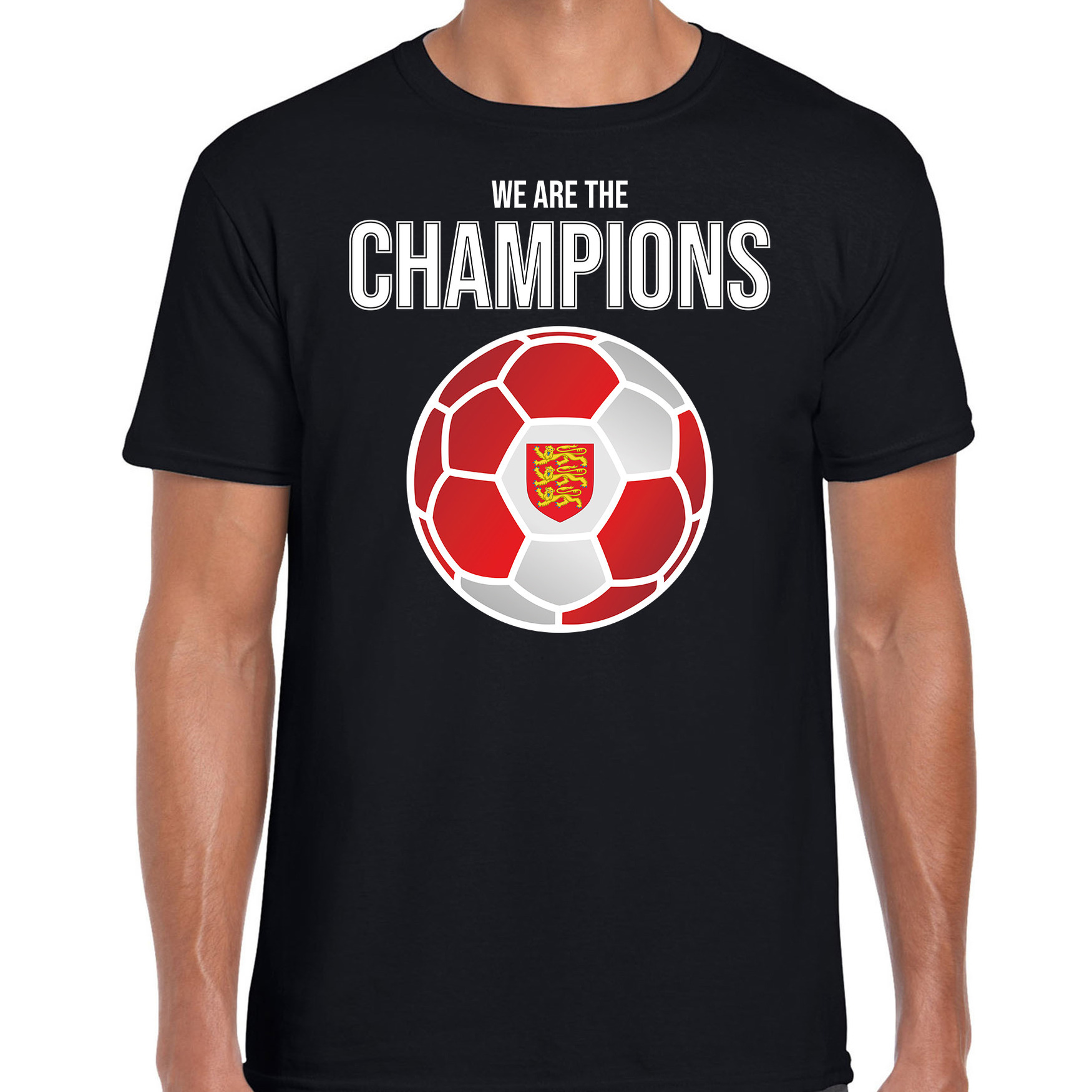 Engeland EK/ WK supporter t-shirt we are the champions met Engelse voetbal zwart heren — Bellatio Decorations