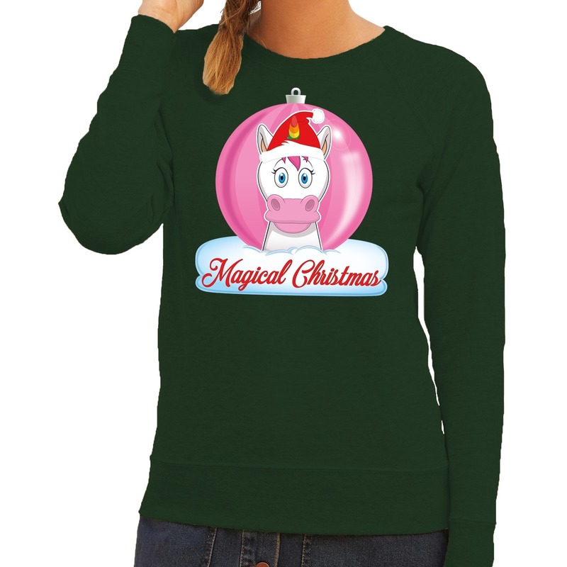 Foute kersttrui eenhoorn magical christmas groene dames sweater — Bellatio Decorations