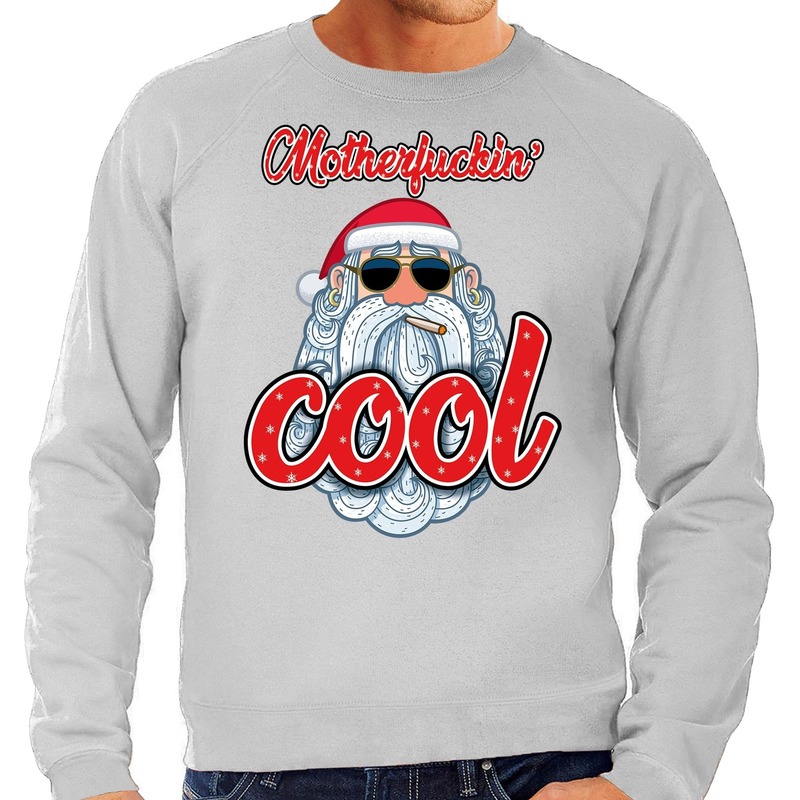 Foute Kersttrui stoere kerstman motherfucking cool grijs heren — Bellatio Decorations