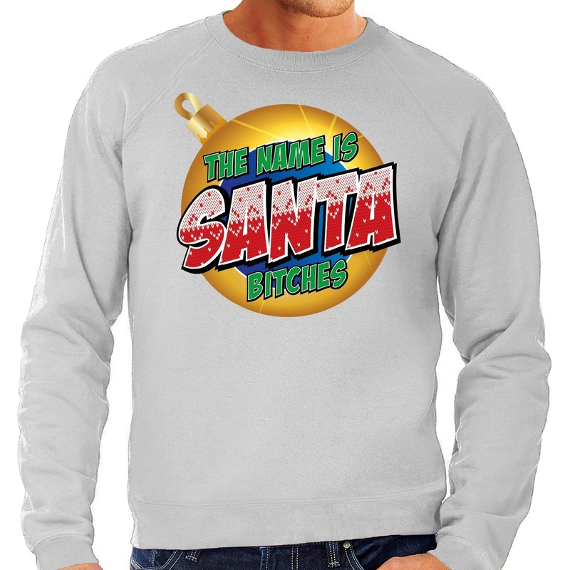 Foute Kersttrui The name is Santa bitches grijs voor heren — Bellatio Decorations