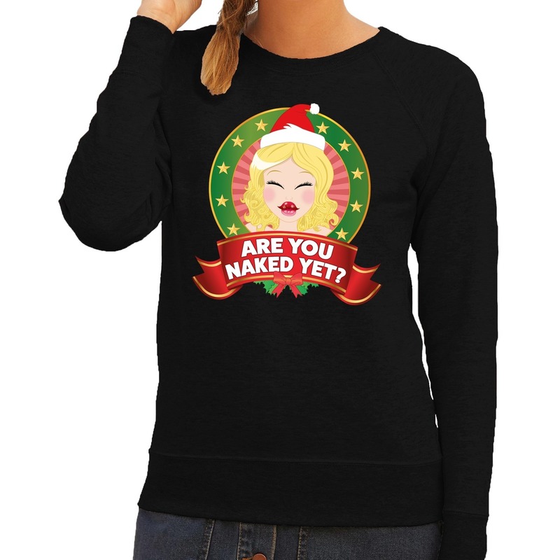 Foute kersttrui zwart Are You Naked Yet voor dames — Bellatio Decorations