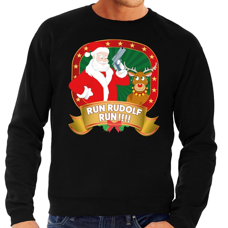 Foute kersttrui zwart Run Rudolf Run voor heren — Bellatio Decorations