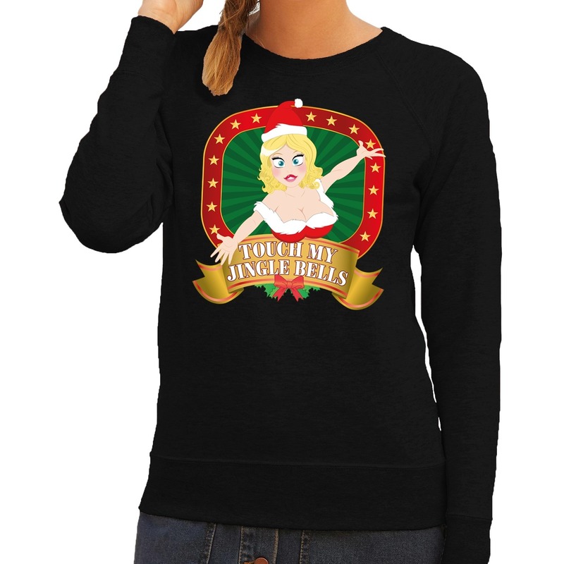 Waar kan ik de Foute kersttrui zwart Touch my Jingle Bells voor dames kopen?