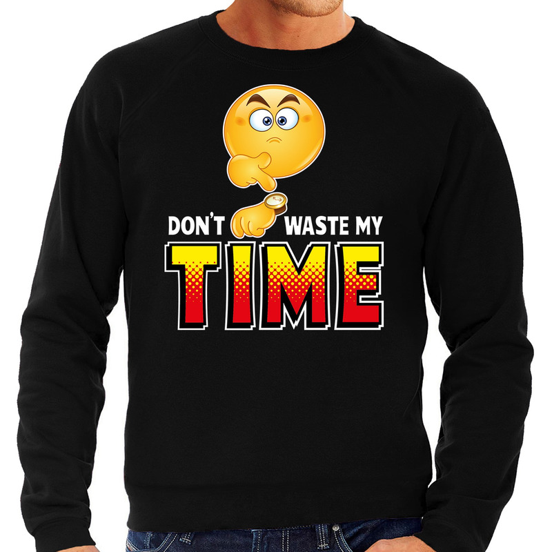 Funny emoticon sweater Dont waste my time zwart heren 2XL (56) – — Bellatio Decorations