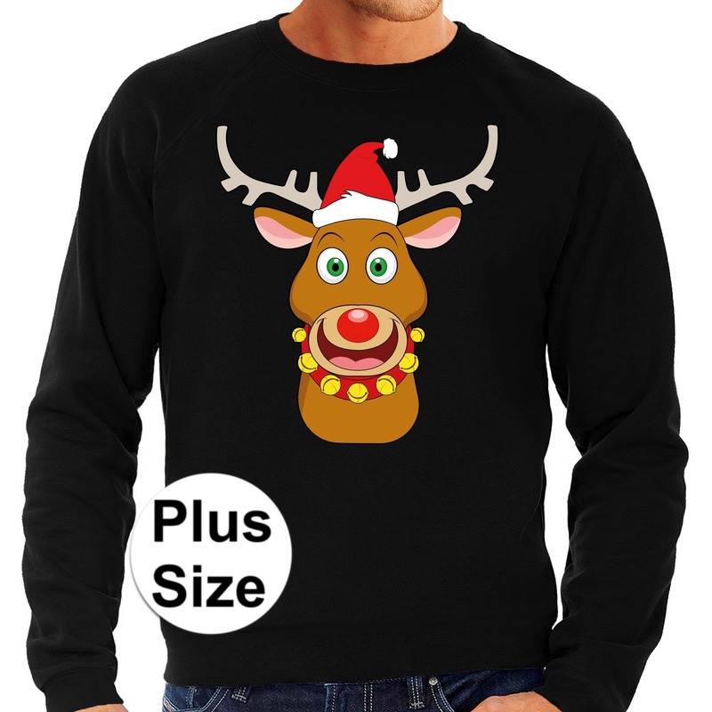 Grote maten foute Kersttrui Rudolf rendier zwart heren — Bellatio Decorations