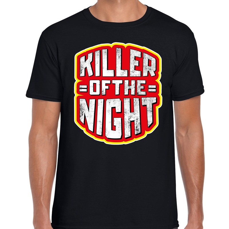 Bekijk product bij Halloween-feestwinkel.nl — bestel vandaag nog en ontvang de Halloween killer of the night verkleed t-shirt zwart voor heren snel thuis.