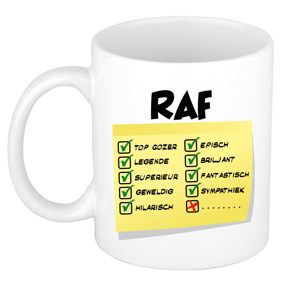 Naam mok Raf – wit – top gozer – keramiek – 300 ml – cadeau collega beker — Bellatio Decorations