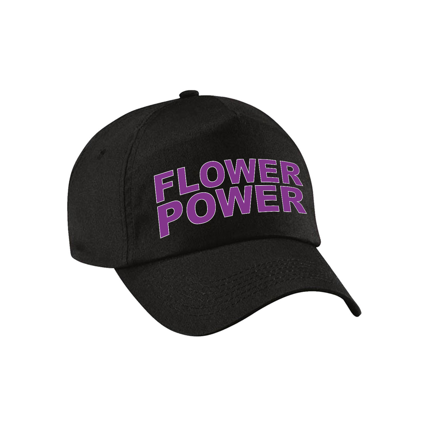Bekijk product bij Bandanawinkel.nl — bestel vandaag nog en ontvang de Paarse letters flower power verkleed pet/cap zwart volwassenen snel thuis.