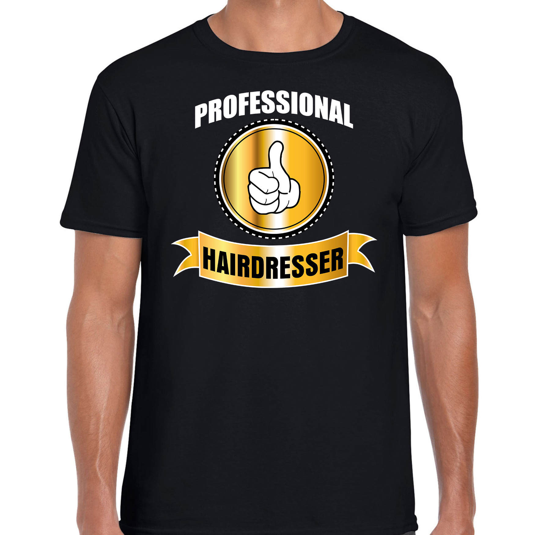Bekijk product bij Feestartikelen-winkel.nl — bestel vandaag nog en ontvang de Professional hairdresser / professionele kapper t-shirt zwart heren – Kapper cadeau shirt snel thuis.