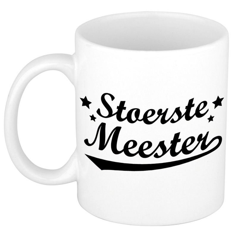 Bekijk product bij Kado-versturen.nl — bestel vandaag nog en ontvang de Stoerste meester bedankt mok / beker 300 ml snel thuis.