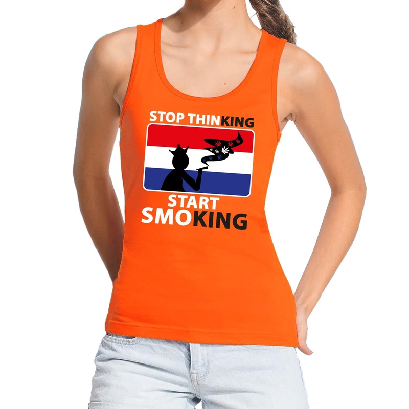 Stop thinking start smoking tanktop / mouwloos shirt oranje dames – Koningsdag kleding — Bellatio Decorations