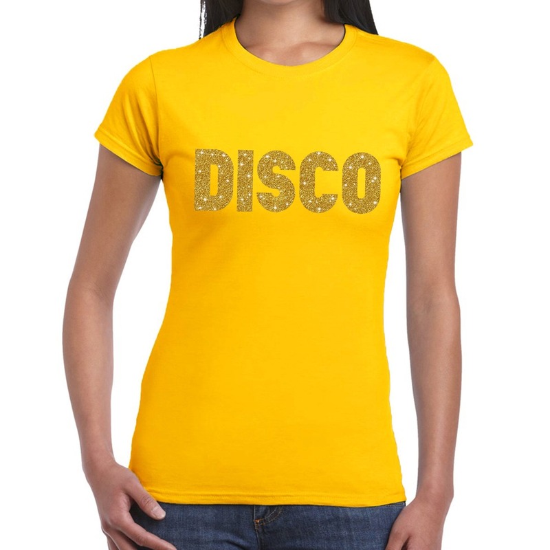 Verkleed T-shirt voor dames – disco – geel – gouden glitter – jaren 70/80 – carnaval/themafeest — Bellatio Decorations