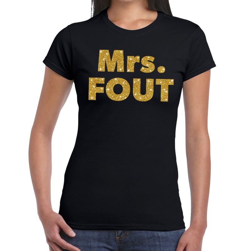 Verkleed t-shirt voor dames – Mrs. Fout – goud glitter – zwart – foute party kleding — Bellatio Decorations