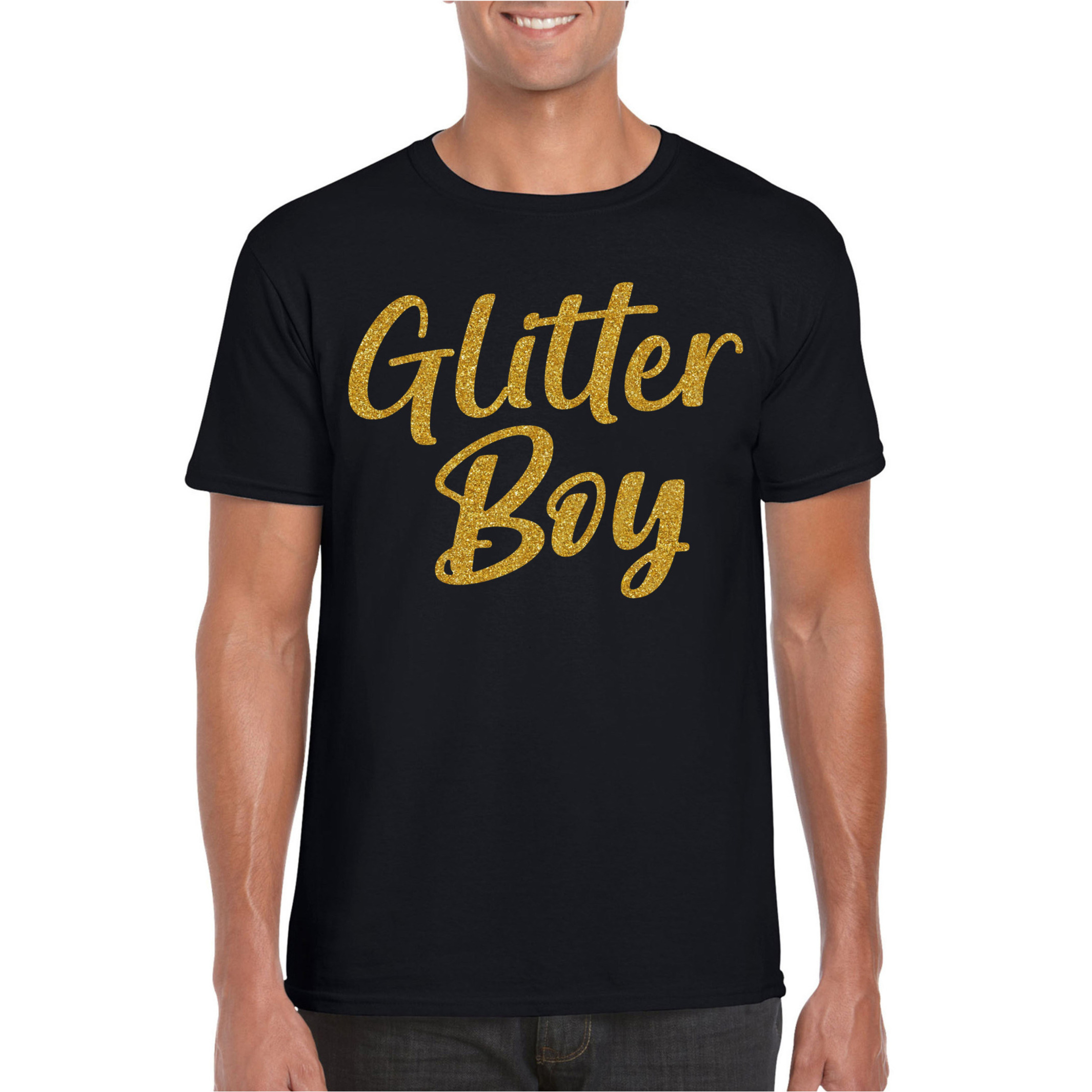 Verkleed T-shirt voor heren in de kleur zwart met goud glitter opdruk. Op het shirt staat de tekst: glitter boy. Heb jij binnenkort een feestje, carnaval of thema feest? Dan is dit shirt onmisbaar! Me Meer info →