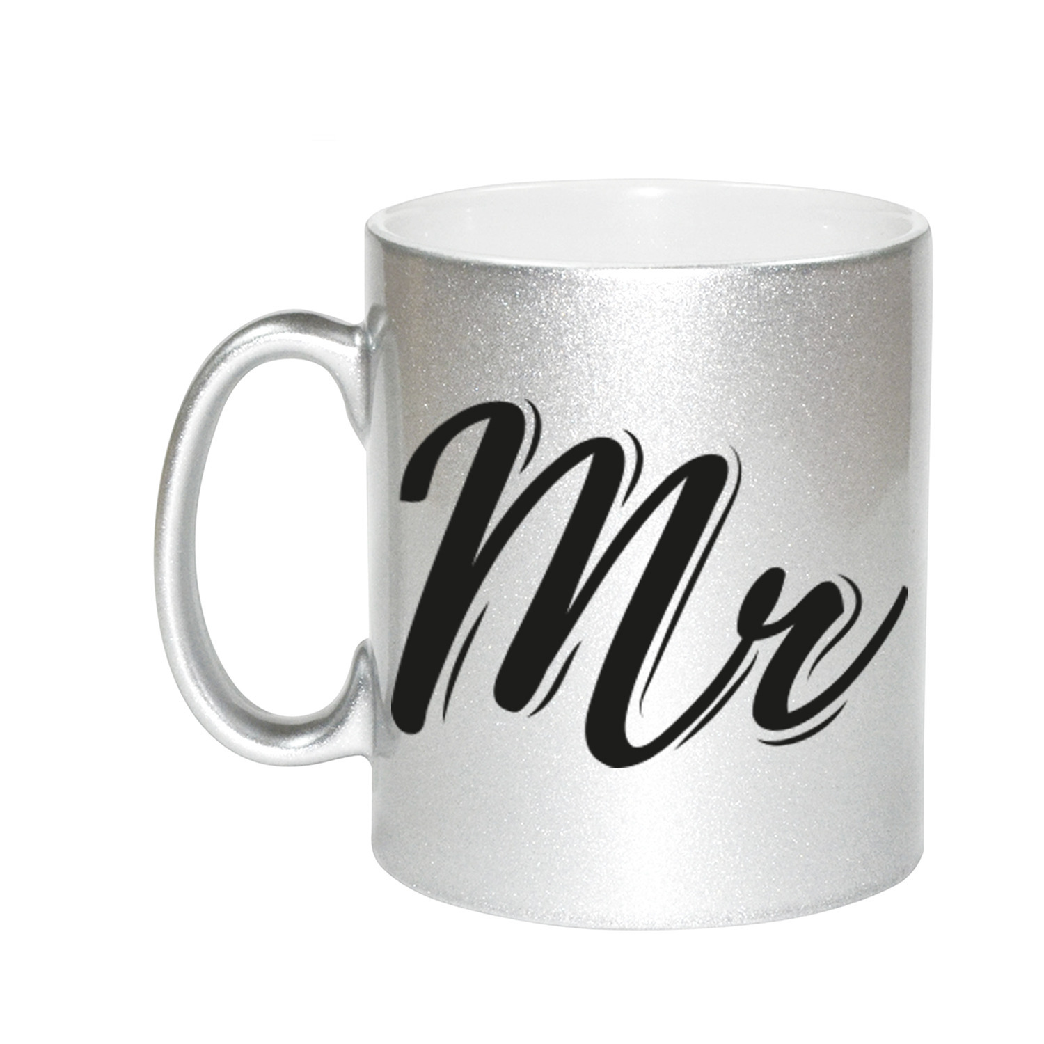 Bekijk product bij Bruiloft-feestwinkel.nl — bestel vandaag nog en ontvang de Zilveren Mr / Mister cadeau mok / beker voor koppels 330 ml snel thuis.