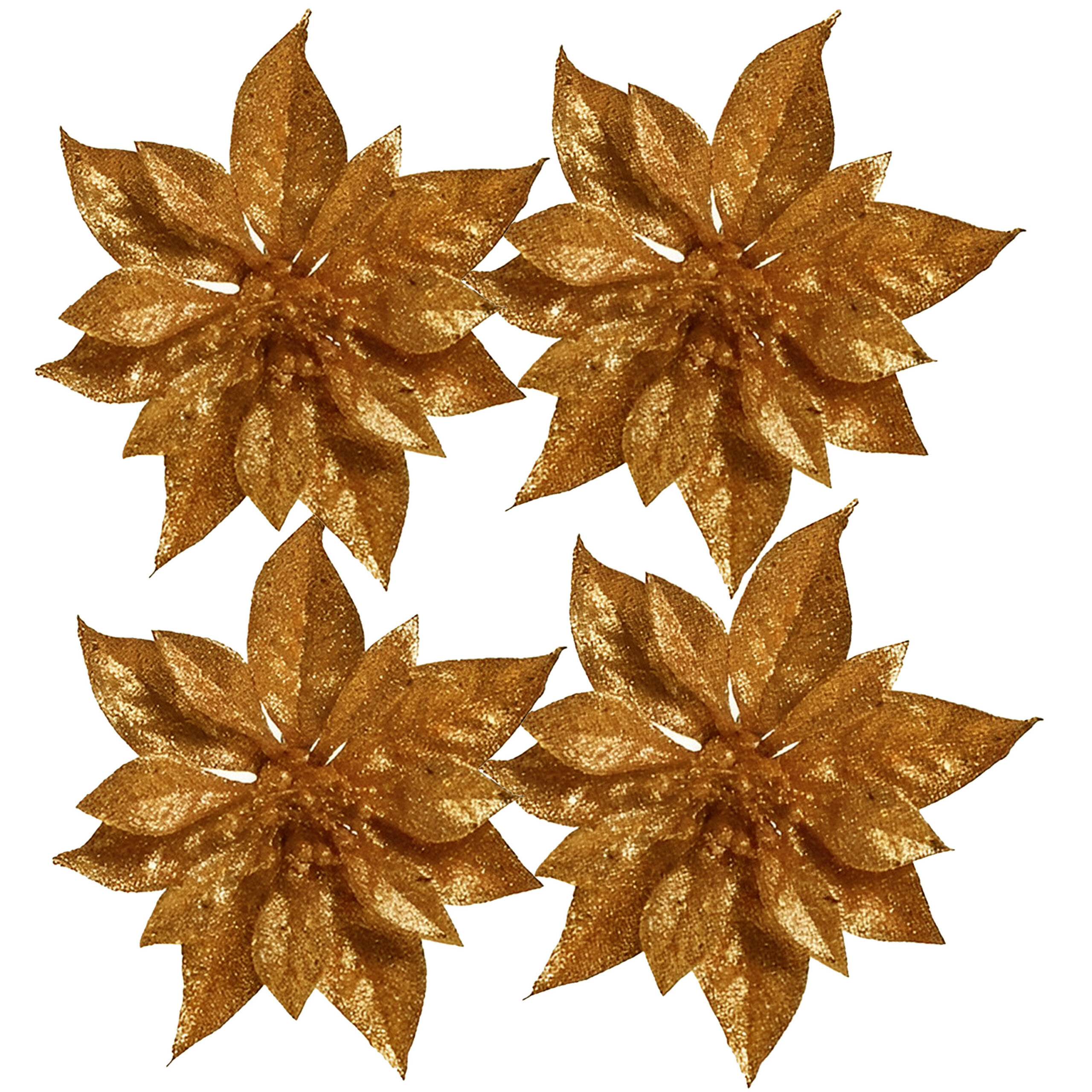 10x stuks Kerstboomversiering bloem op clip koperen kerstster 18 cm — Bellatio flowers & plants