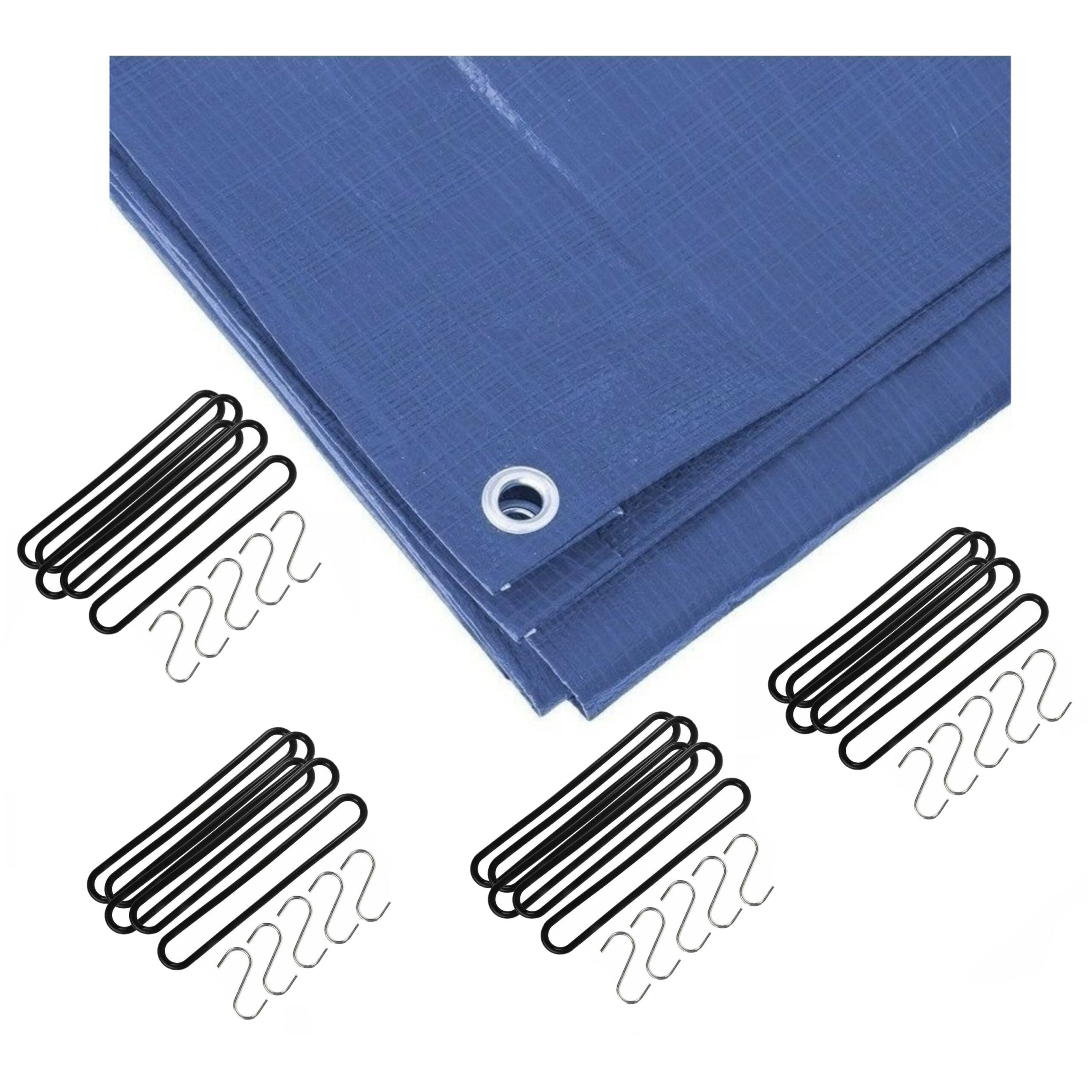 Afdekzeil / dekzeil blauw 4 x 6 meter met 20x spanrubbers en S-haken — Benson