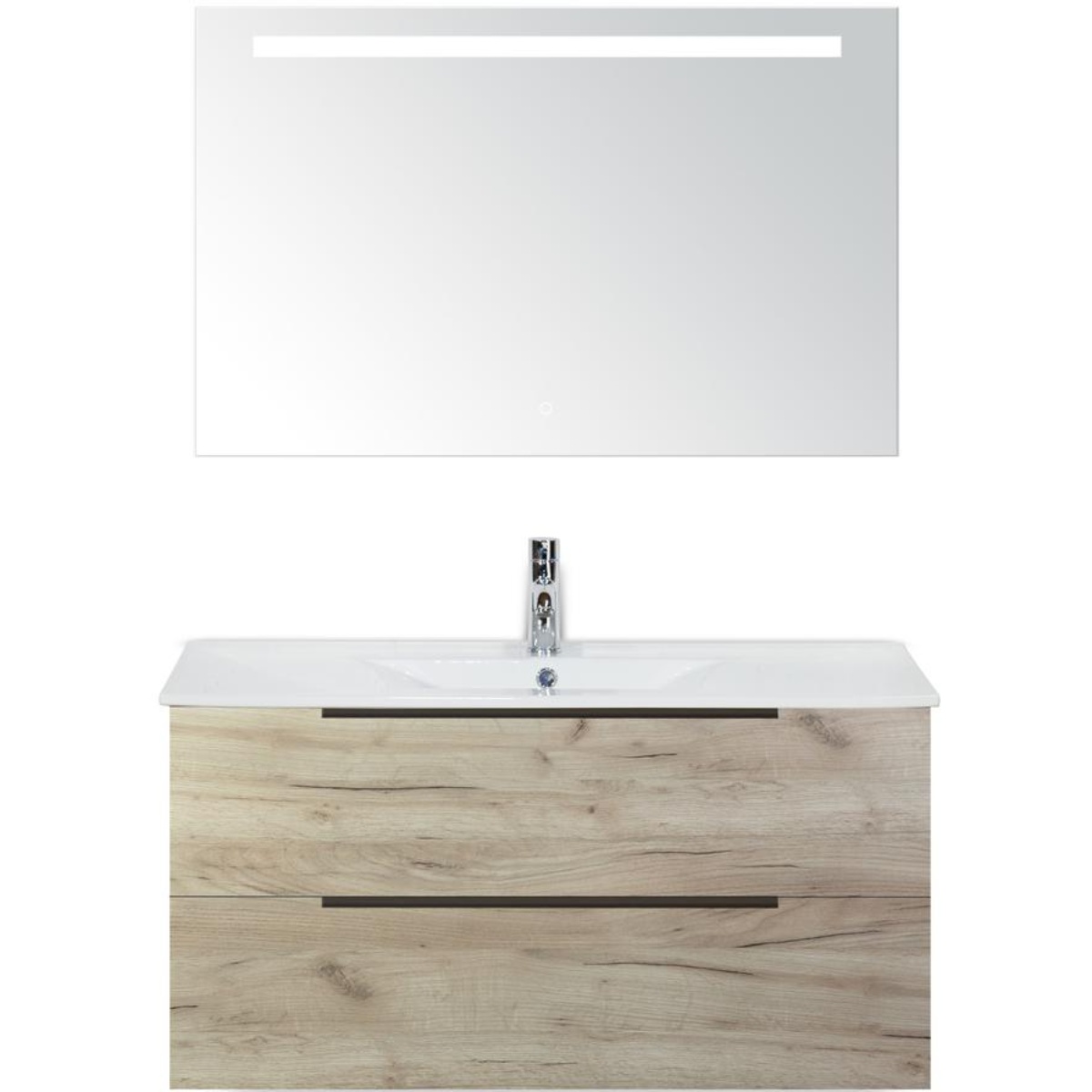 Seville Badmeubelset 100 cm – Craft Oak Edge Greep – Wastafel Enjoy met Sence Spiegel — BES LED