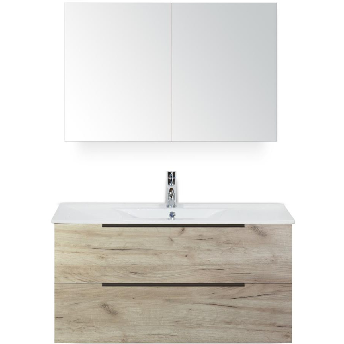 Seville Badmeubelset 100 cm – Craft Oak Edge Greep – Wastafel Enjoy met Spiegelkast — BES LED