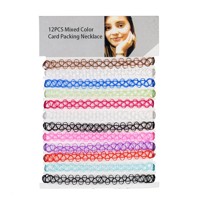 Rainbow 12 Kleuren Choker Ketting set Perfect voor elke gelegenheid, onze Rainbow Choker set collectie! Met alle kleuren die passen bij een coole outfit. Perfect om zelf te dragen of cadeau te geven. One size fits all. Set van 12 Kleur Tattoo Choker kettingen Uitgebreide set met 12 gekleurde Chokers. Perfect voor elke gelegenheid, mooi te combineren of aan je vriendinnen te geven! De chokers kettingen zijn stevig in elkaar gezet en hebben mooie onderscheidende kleuren. Kies voor fel roze, rood of blauw om op te vallen of voor lichtblauw, lila of bruin om subtiel te dragen. Naast alle regenboogkleuren, zit er ook nog een zwarte choker bij, die je altijd kan kiezen voor elke gelegenheid. Zoek je de perfecte coole halsketting? Dan is dit de set voor jou! One size fits all.