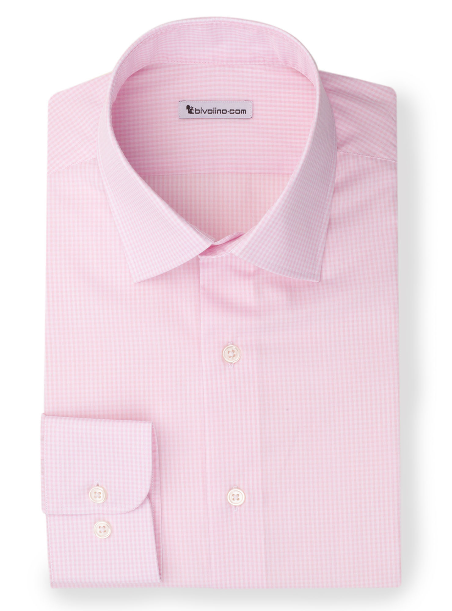 Bekijk product bij Bivolino.com — bestel vandaag nog en ontvang de BOLIVICINI – roze popeline boernbont overhemd – Kento 1 snel thuis.