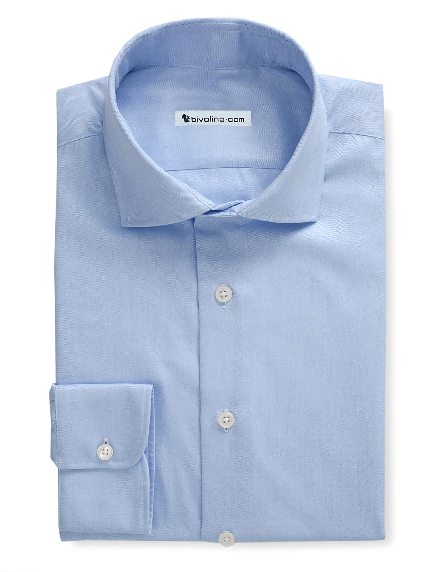 Bekijk product bij Bivolino.com — bestel vandaag nog en ontvang de DEXUGIA – Visgraat uni blauw overhemd – PEGLI 2 snel thuis.