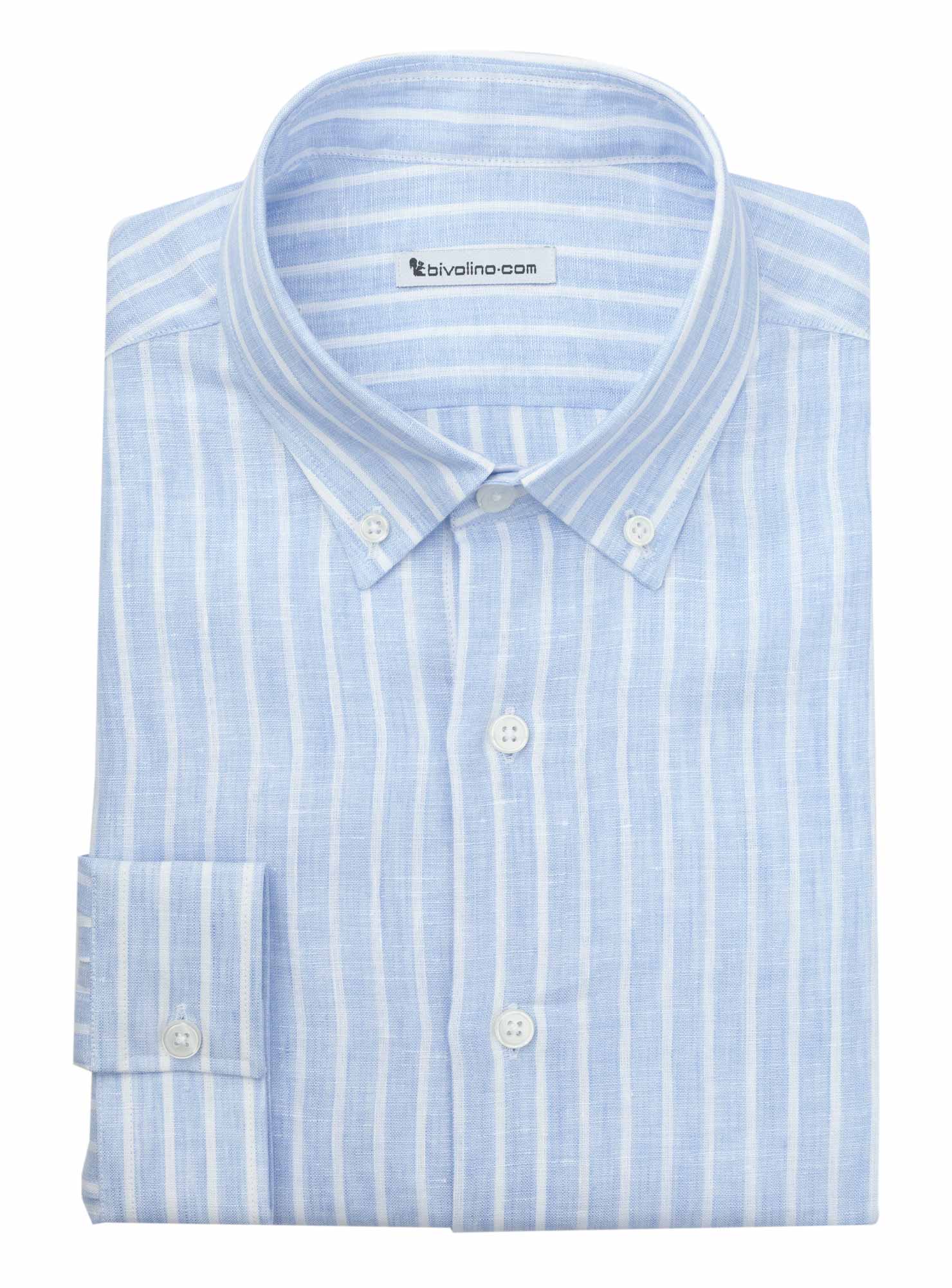 ERACLEA – Linnen blauwe streep heren overhemd – NEON 1 — BIVOLINO