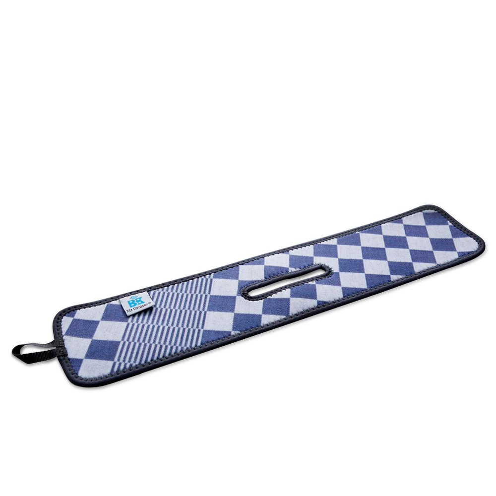 Leg de pannenlap over het deksel met de gleuf over de dekselgreep. Bij het afgieten houdt Mr. Gripper de deksel goed tegen. De lappen kunnen aan weerskanten over de grepen gelegd worden, zodat de pan eenvoudig te hanteren is. De pannenlappen zijn verkrijgbaar in een vrolijk gekleurd streepjesdessin en een opvallend BK- blauw dessin en hebben een lus waarmee je Mr. Gripper in de keuken op kunt hangen. Mr. Gripper is extra veilig vanwege het hittebestendige, neopreen materiaal. De onderkant van Mr. Gripper is van zwart rubber, eveneens hittebestendig en voorzien van een antislip- textuur.
