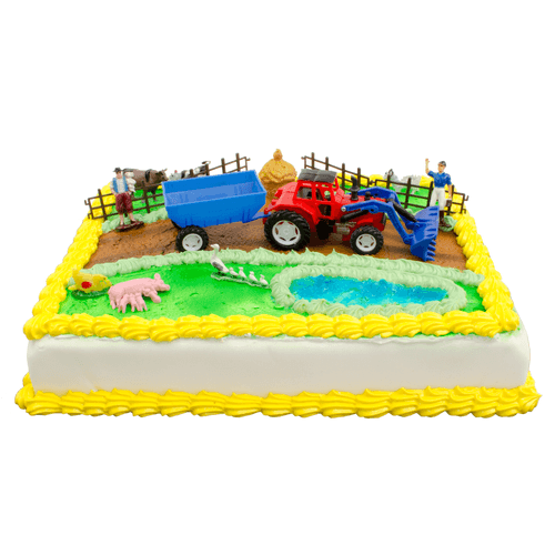 Heeft jouw kind een liefde voor alles dat met boerderijen te maken heeft? Deze kindertaart met gele room/slagroomvulling en een lekker crème randje is dan perfect! Het komt met plastic figuurtjes van dieren, boeren en een tractor met aanhangwagen! Leuke extra’s bij deze heerlijke taart.